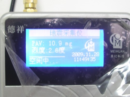 2009年11月28日0時4分左右,什邡市與彭州市交界發(fā)生的5.0級地震,成都市區(qū)震感明顯。安裝在我公司的地震采集儀,記錄到了當時的地震信息。采集儀上顯示記錄到的地震烈度為2.6度。