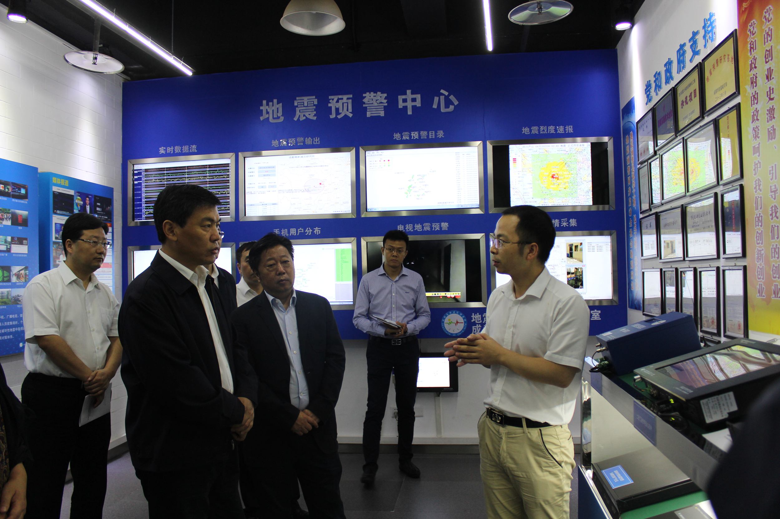 9月18日,成都市市長羅強一行到美幻科技調研,成都高新區書記范毅等領導陪同調研,美幻科技總經理王暾博士匯報了在高新區、成都市、四川省和國家的支持下,成都市的地震預警技術已處于全球領先水平、美幻科技與市縣地震部門已建成覆蓋我國地震區人口90%的全球最大地震預警網、成都市的地震預警技術已安全服務民眾、工程、國防、政府5年,連續預警了30次破壞性地震,無一誤報、漏報等情況。王暾博士還匯報了成都市的地震預警服務模式創新,引領了我國地震預警領域的機制創新,正促進全面創新改革、供給側改革在地震預警領域創新實踐。