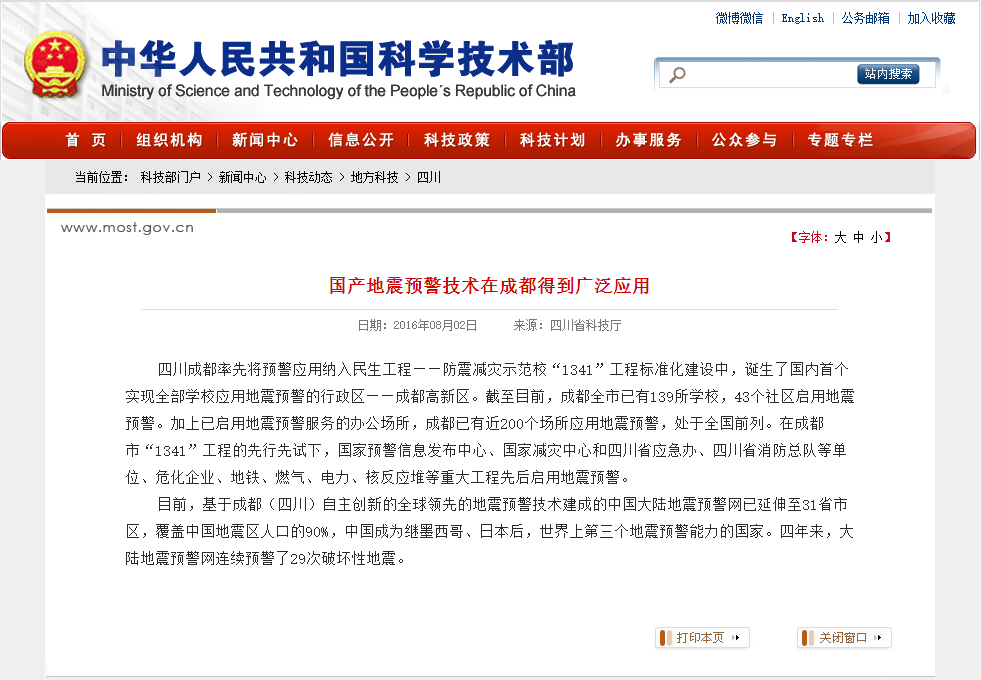 【政府支持】國產地震預警技術在成都得到廣泛應用