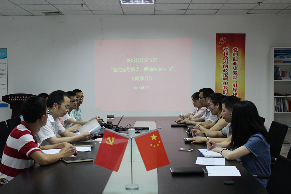 為全面貫徹落實中央、省委、市委、高新區、桂溪街道黨工委和軟件園黨委關于“兩學一做”學習教育的部署,進一步深化“兩學一做”學習教育工作,強化黨員先鋒模范作用,推動“全面從嚴治黨”向基層延伸,美幻科技黨支部于2016年6月3日召開關于 “堅定理想信念、明確政治方向”專題學習討論會。