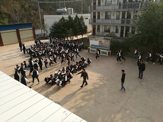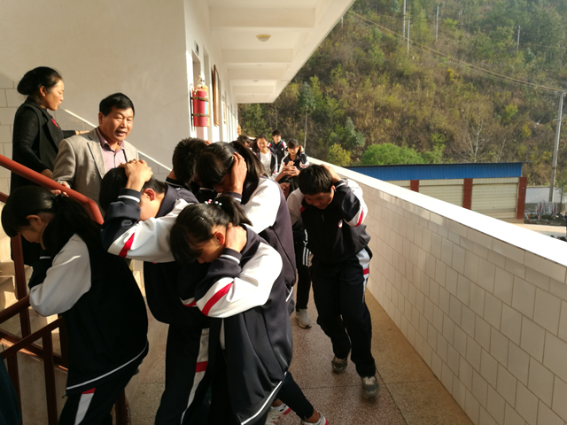 離震中69公里的大理州永平縣廠街初級中學(xué)預(yù)警時間14秒,師生聽到警報(bào)后進(jìn)行疏散避險(xiǎn)(大理州永平縣廠街初級中學(xué)侯老師 攝)