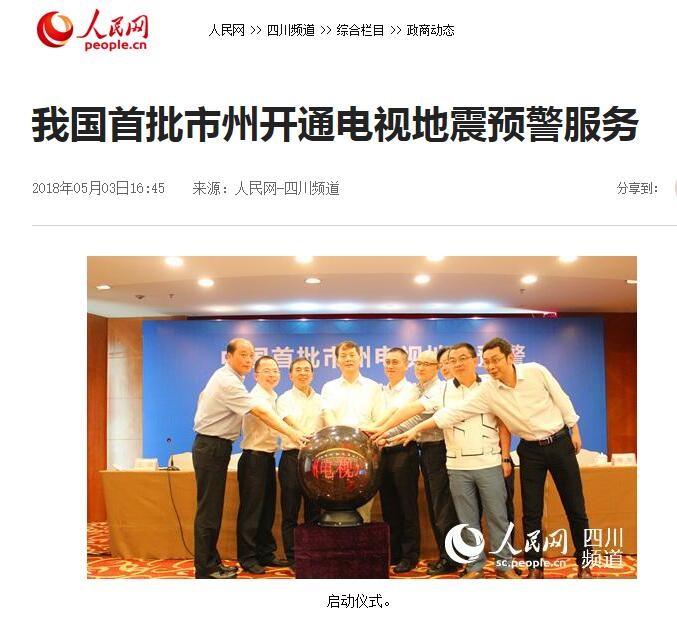 新聞來源:人民網 我國首批市州開通電視地震預警服務