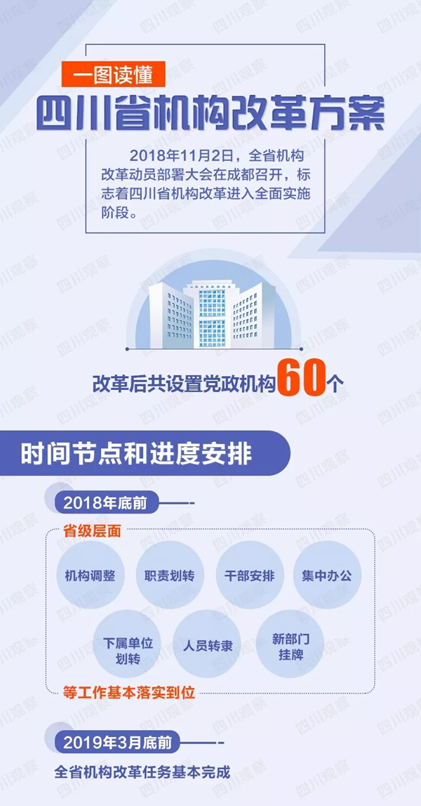 11月2日,四川省機構改革動員部署大會舉行,會上正式公布了《四川省機構改革方案》。《方案》具體有哪些內容?小編帶大家一圖讀懂。