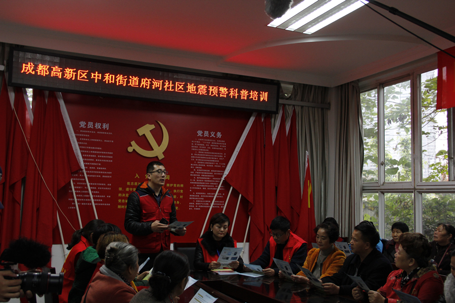 2018年11月15日,成都高新區(qū)中和街道府河社區(qū)、成都高新減災(zāi)研究所等單位共同組織開(kāi)展了“府河社區(qū)地震預(yù)警科普培訓(xùn)及地震預(yù)警演練”的活動(dòng),以增強(qiáng)轄區(qū)居民增強(qiáng)防震安全意識(shí)及應(yīng)急避險(xiǎn)能力。