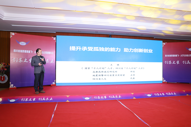 王暾博士應邀在四川省第四屆“我能飛”大學生青春無畏創業年會做主題演講