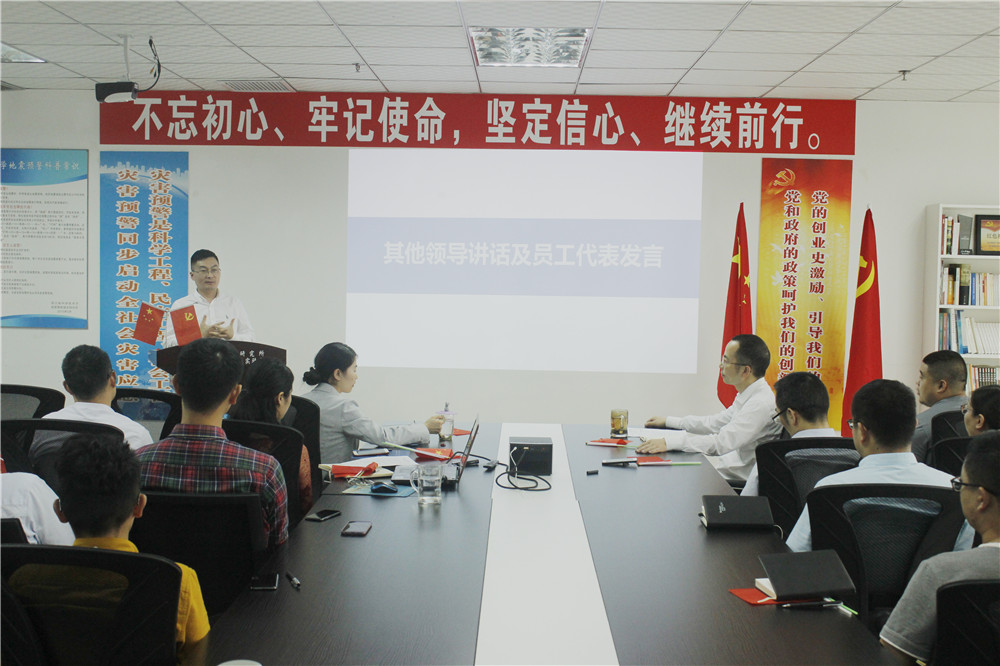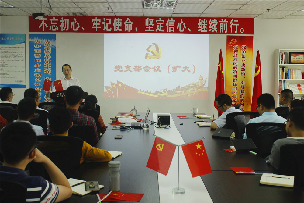 會議要求,公司全體黨員干部要堅定理想信念,始終保持政治定力,堅守共產黨人的精神追求。一要牢記黨的光榮歷史,繼承發揚黨的優良傳統二要示范樹標桿,充分發揮黨員干部的先鋒模范作用;三要繼續深入抓好不忘初心 牢記使命主題教育,心懷責任、敢于擔當;四要牢記使命,始終保持一顆為國家服務之心,主動作為,服務國家及全球災害安全。