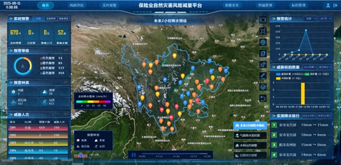 2025年2月,中華財險四川分公司與減災所達成合作,共同推進多災種預警服務風險減量服務,合作建設了面向保險行業(yè)的風險減量通用技術平臺(見圖2)。該平臺在保前階段依托風險普查數據,實現對自然災害風險的精準全面評估,不僅能量化潛在風險,還可對比分析有無預警服務帶來的風險差異;在保中階段,則通過多災種預警服務,有效提升企業(yè)災害預警能力,為人員疏散、車輛轉移等應急措施爭取寶貴時間,助力企業(yè)筑牢防災減災安全防線。